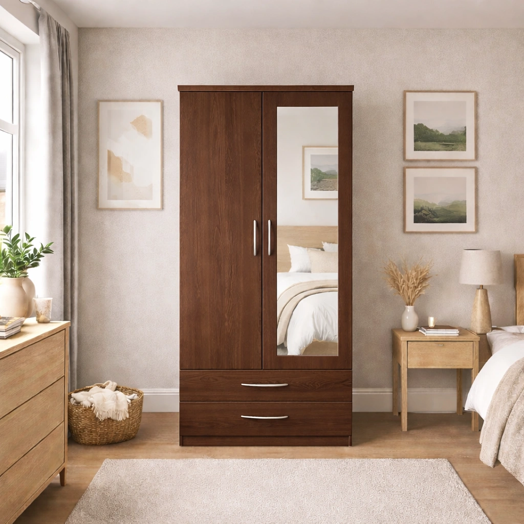 2 Door Mirrored Wardrobe with 2 Drawers | Modern Bedroom Storage