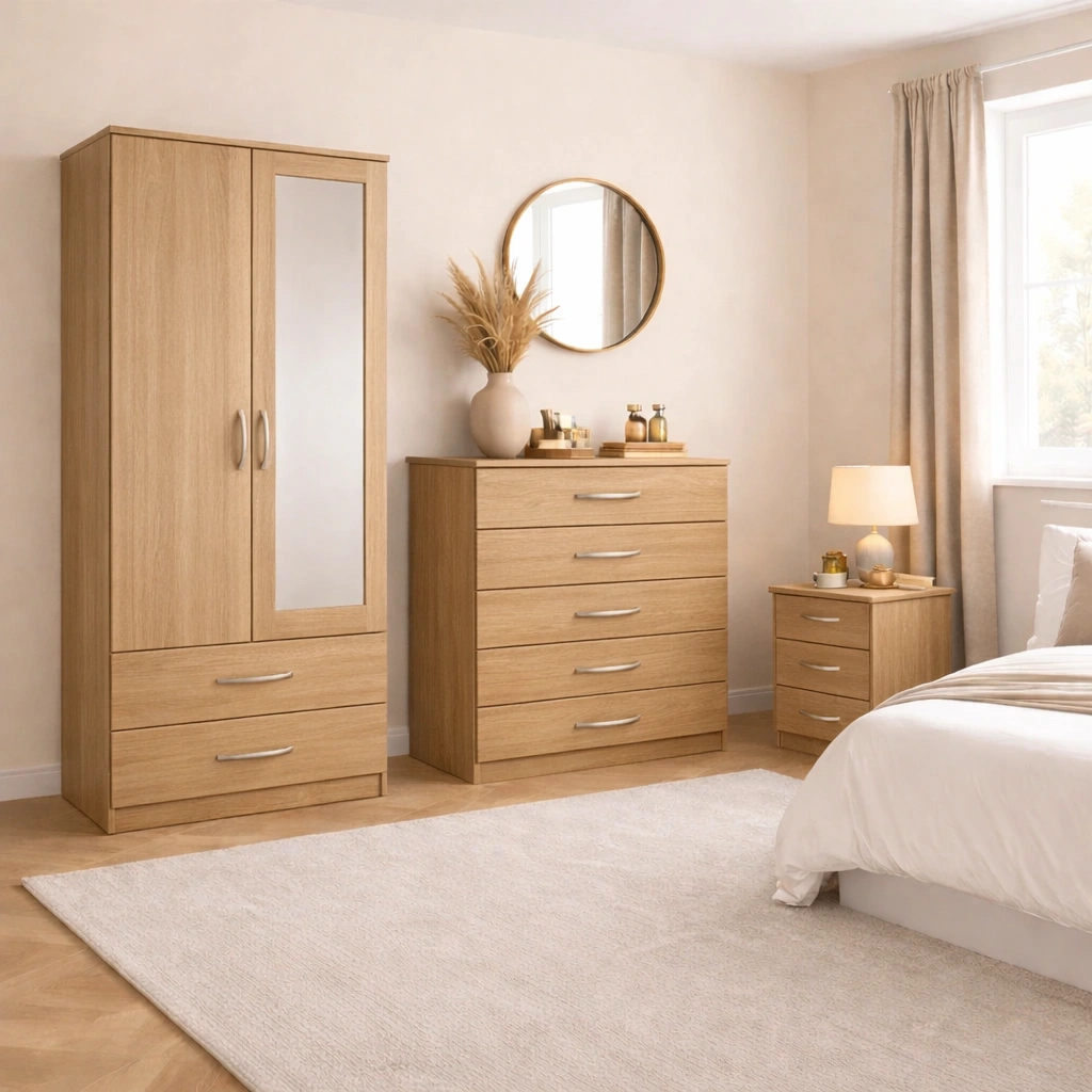 If you are looking for a bedroom furniture set with 2 door wardrobe, chester & bedside table, this option offers comfort, storage, and a tidy appearance in one matching set. It helps create a calm and organised bedroom that feels comfortable every day.